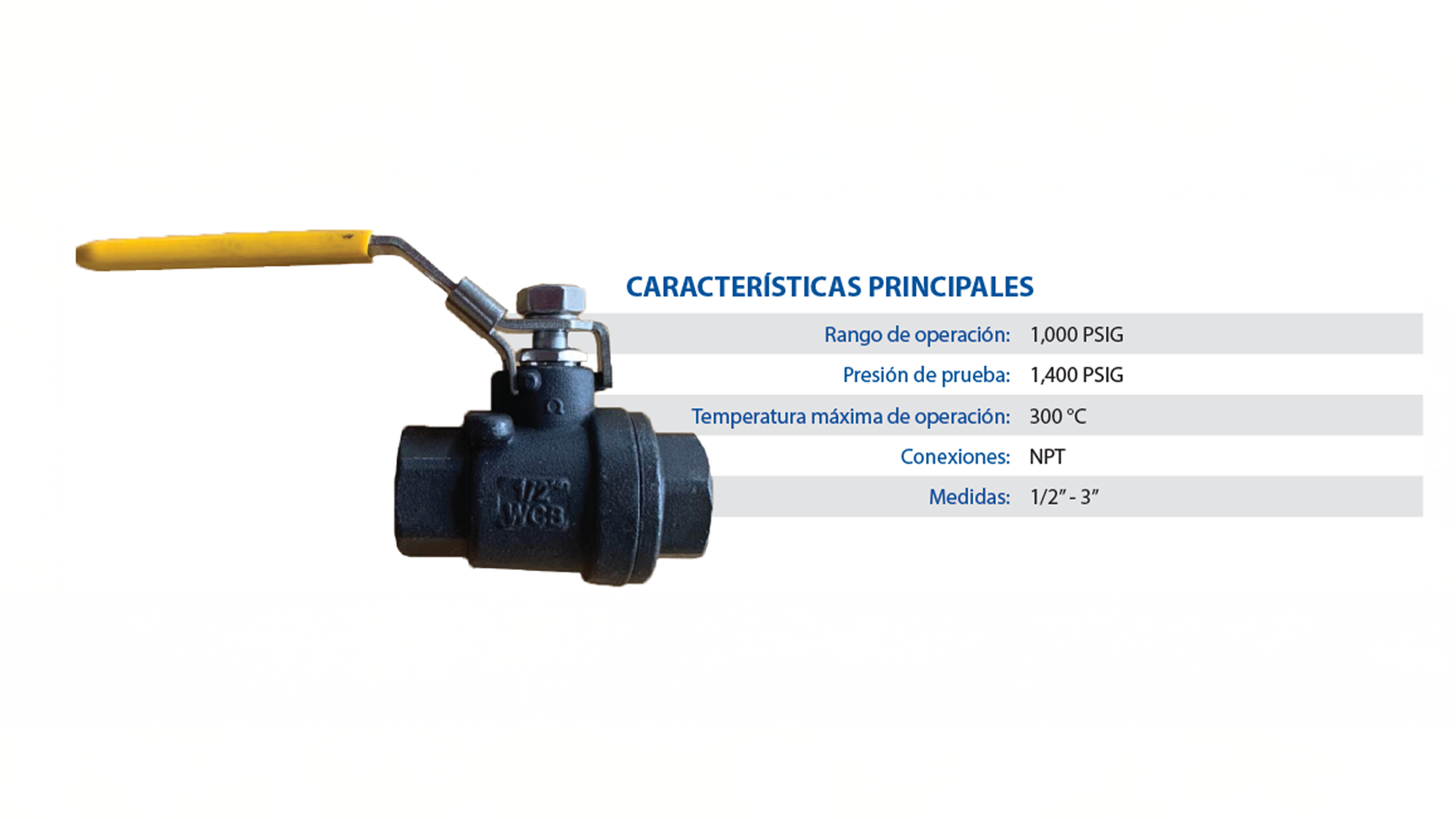 • Compatible con conexiones NPT en medidas de 1/2” a 3”.